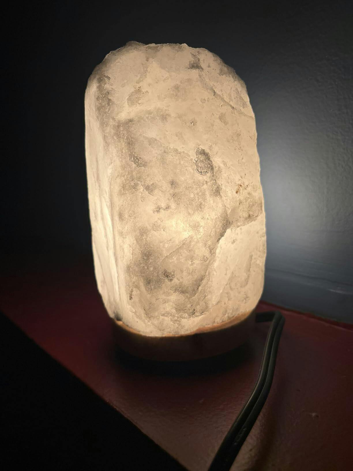 I wanted a white salt lamp with a neutral color and balanced proportions, and this one exceeded my expectations! It’s perfectly white with no dull streaks, just as I hoped. I’ve wanted a salt lamp for ages to use as a nightlight, and now I finally have one—woohoo! The dimmer switch is an awesome feature, and I’m excited to set it on a timer for effortless evening ambiance. Plus, it’s a wonderful way to freshen the air and add cozy warmth to any space!