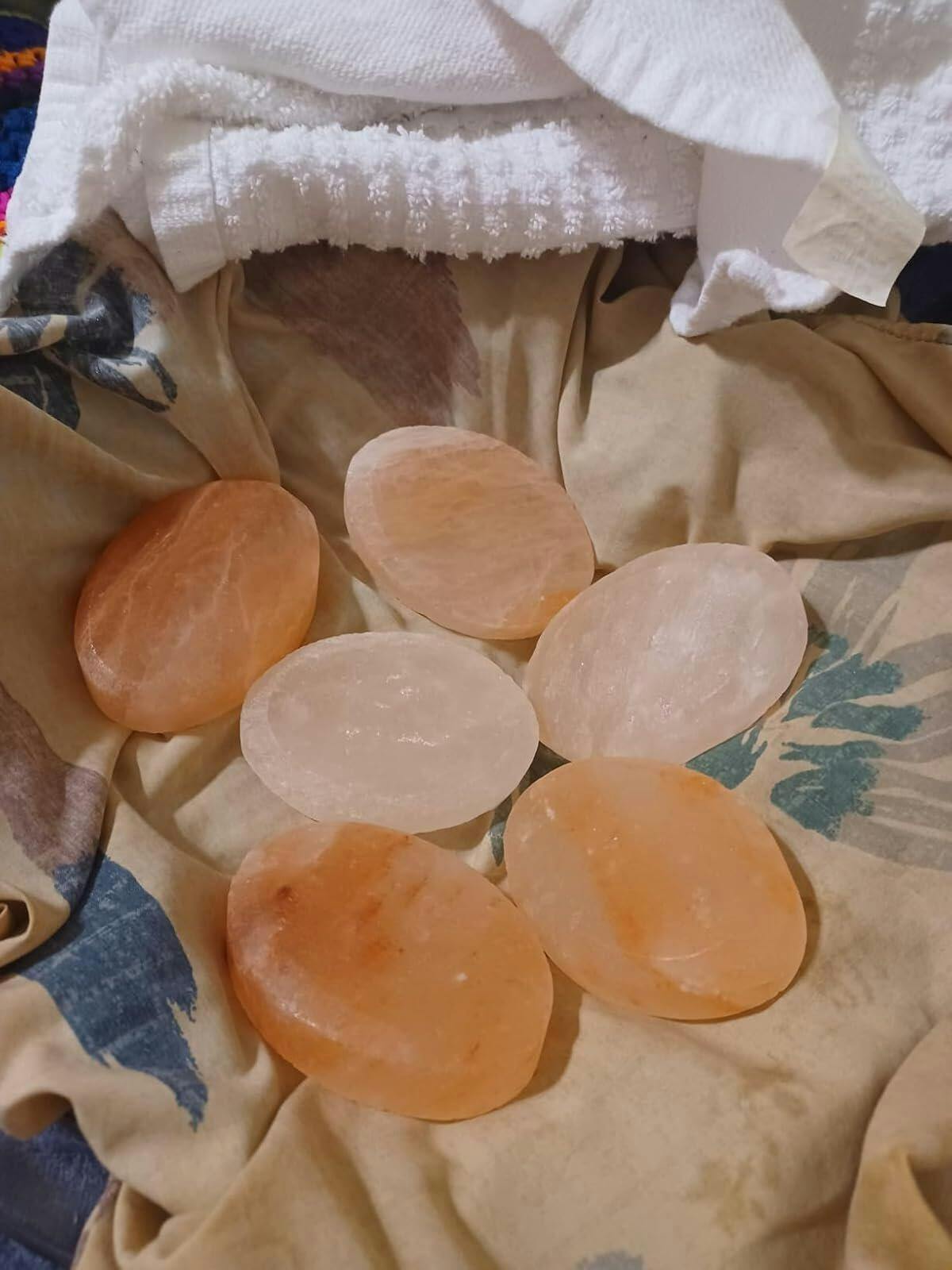 I absolutely love these Himalayan salt stones! I use them slightly warmed before bedtime and they make such a difference. The smooth texture glides perfectly over the skin, and the warmth eases tension in my shoulders. Feels like a spa experience at home. Highly recommend!